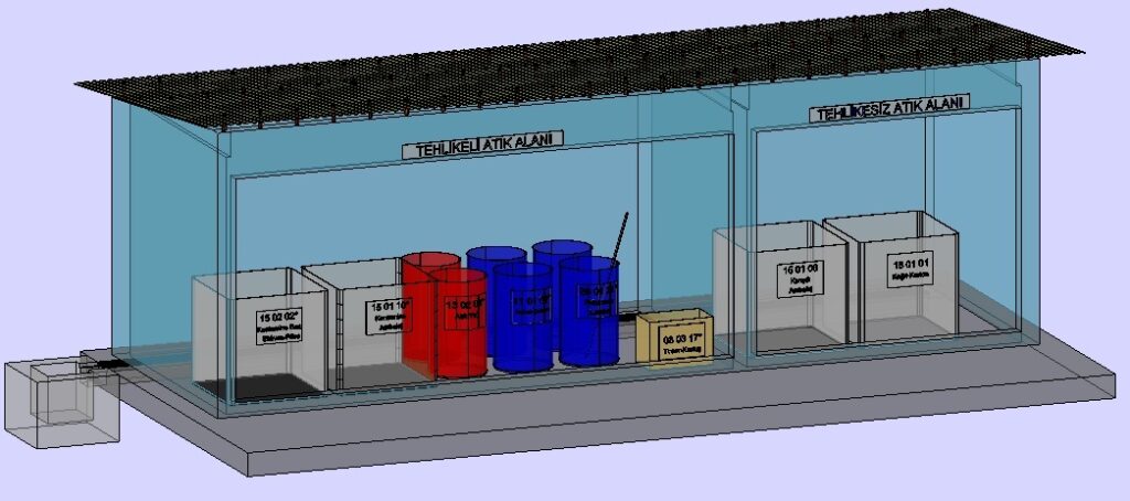• Tehlikeli atıklar ile tehlikesiz atıkların birbirinden ayrı olarak toplanması, giriş kapılarının farklı olması ve yakınında Yangın Tüpü bulundurulması gerekmektedir.